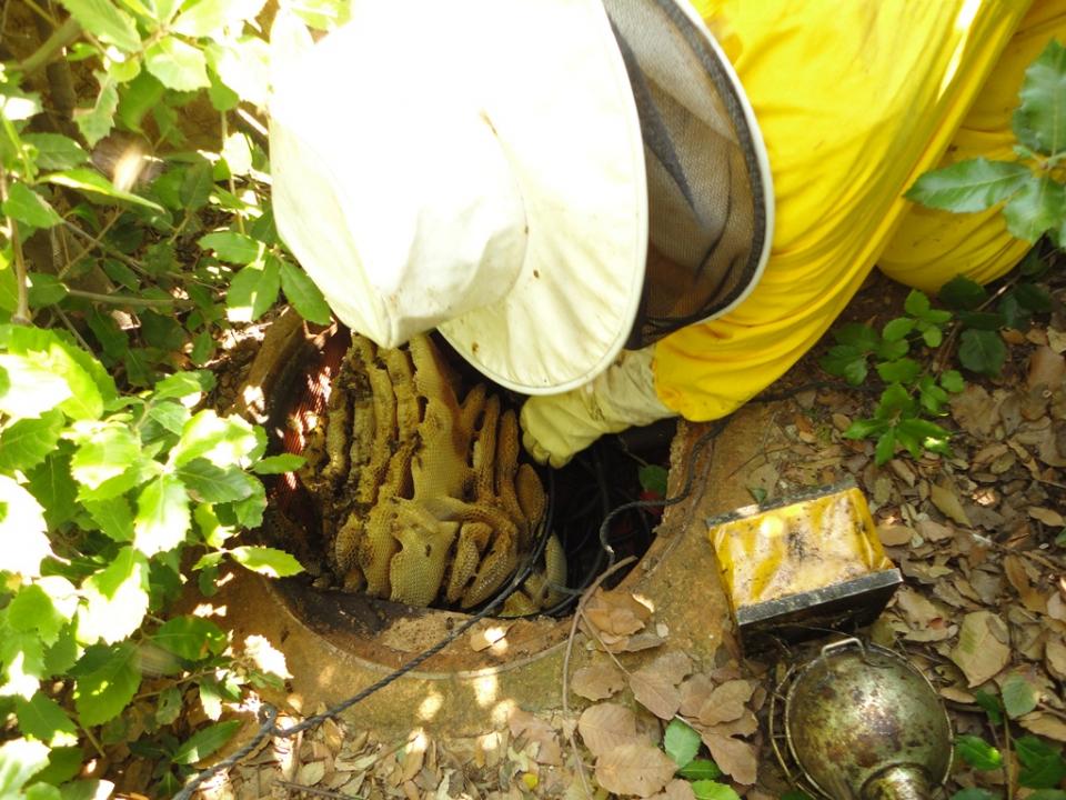 Aquesta vegada la dificultat era que el teniem sota una boca de registre per on passen cablejats elèctrics, i la bresca havia embolcallat tot el cablejat. Una feina molt delicada que només una persona amb una gran experiència com és en Lluis Peixa, podia portar a terme, amb garantíes d'èxit i que amb els seus quasi 90 anys està en plena forma. Des d'Anura volem ajudar a preservar i en la mesura del possible millorar el medi, fent petites aportacions com la de recuperar eixams per assegurar que tinguin continuitat. petit video http://www.youtube.com/watch?v=KgfuCP_bc3Y
